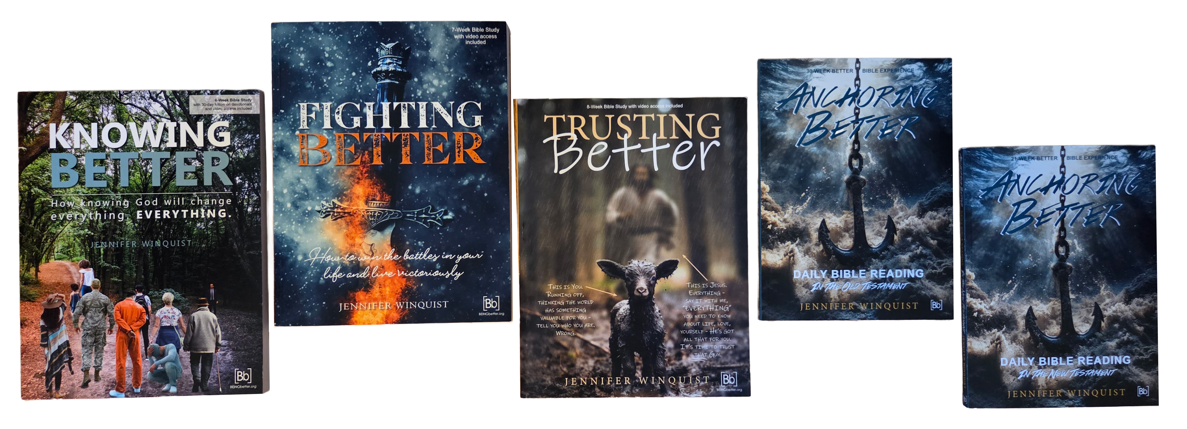 There are 5 books that make up the Better Discipleship Program (BDP). Start with the Knowing Better study. It's a 6-week study with 5 days of "homework" and an extra Wrap-up day. Give it to people to do on their own who are going through deep waters, struggling in their faith, as well as for new or confused believers.